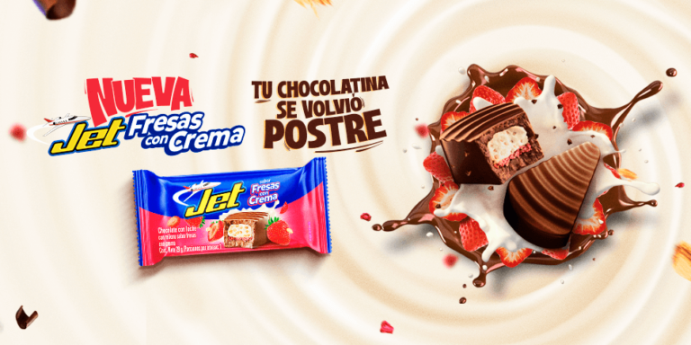 “Tu chocolatina favorita se volvió postre” Jet lleva más de 60 años siendo la chocolatina de los colombianos. Es la primera chocolatina que probamos, que