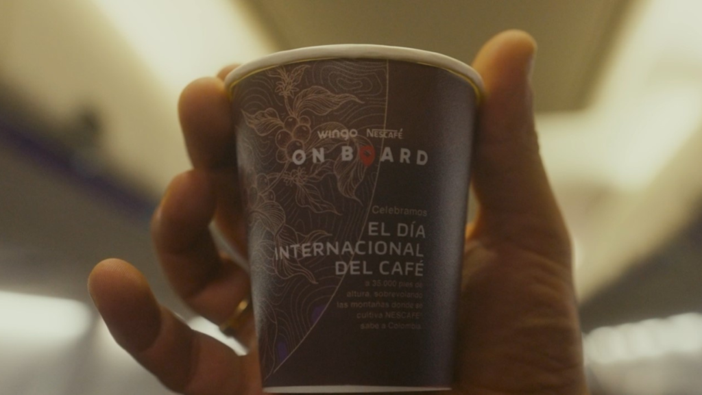 Bogotá, 13 de octubre. Como ya es tradición, NESCAFÉ® un café que se toma en todo el mundo, anualmente celebra el Día Internacional del Café, y este año de la mano de WINGO, lanza NESCAFÉ® ON BOARD. Una campaña hecha en el cielo, dentro de diferentes vuelos internacionales que en su ruta debían cruzar por Colombia, y justo en ese momento, mientras sobrevolaban las montañas del país, NESCAFÉ®️ Artesano, la versión colombiana de la marca y WINGO sorprendieron a los pasajeros con una taza de café 100% colombiano. Una experiencia a la altura de uno de los mejores cafés del mundo.